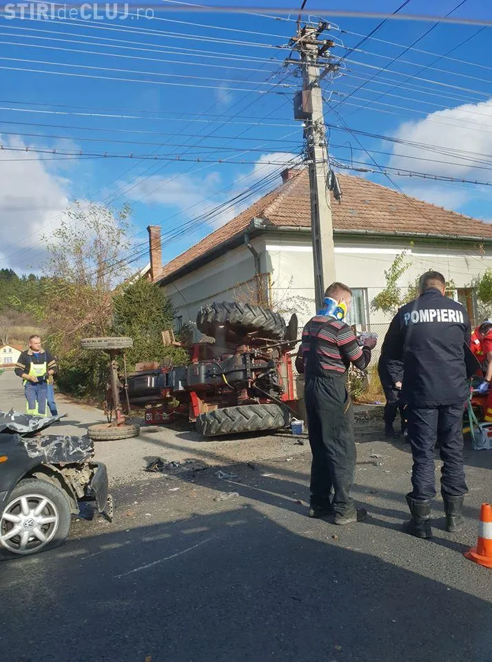 Accident între un tractor și un autoturism, la Vlaha FOTO