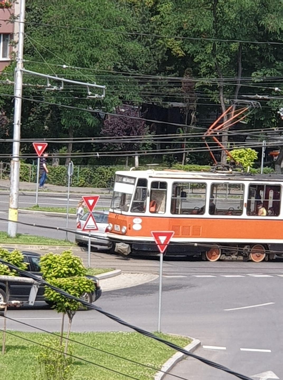 Accident între un tramvai și o mașină în Mănăștur FOTO