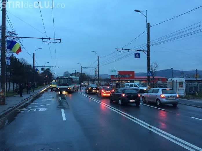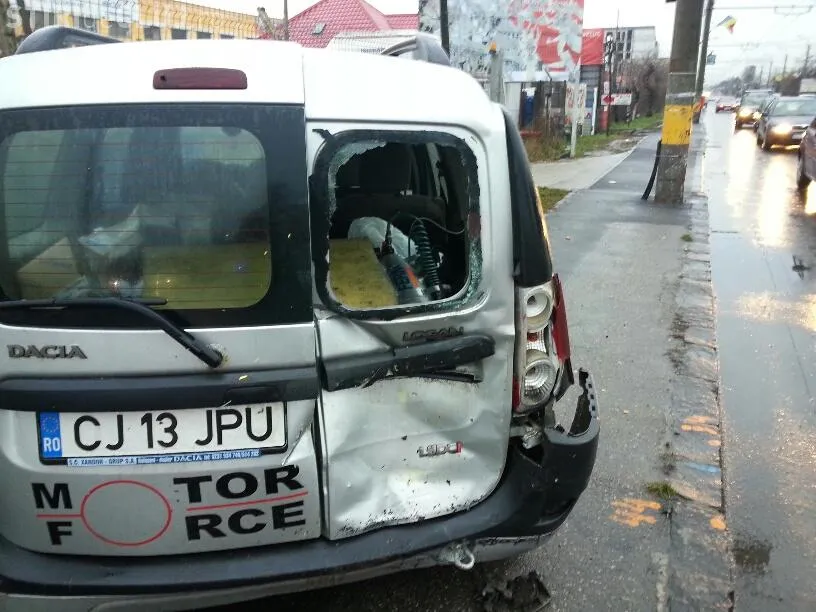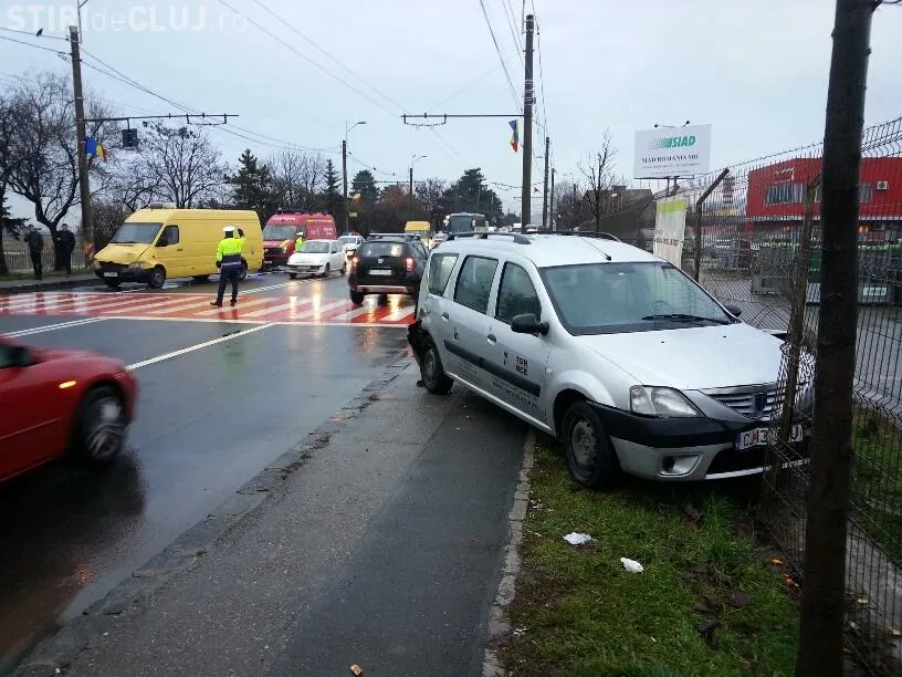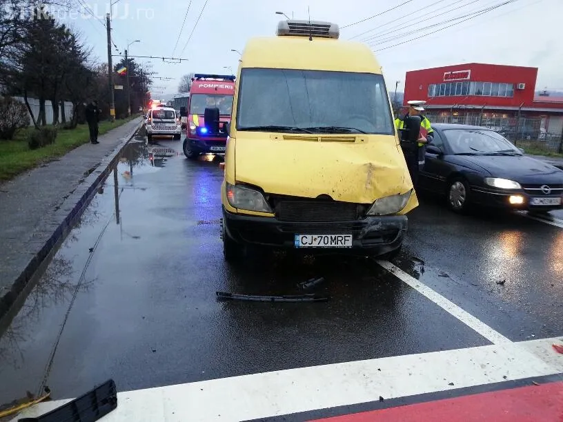 Șoferul tamponat a fost proiectat pe trecerea de pietoni, unde a lovit o tânără de 16 ani, care traversa regulamentar strada, anunță IPJ Cluj.