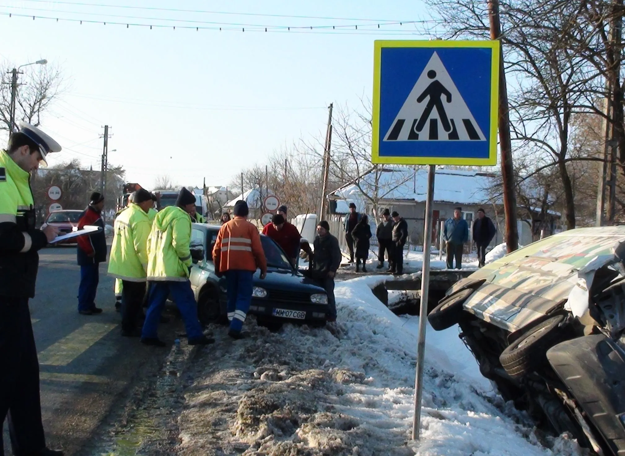 Soferul dubei nu a mai putut opri si s-a rasturnat in santul de pe marginea drumului. Circulatia a fost blocata aproximativ 30 de minute.