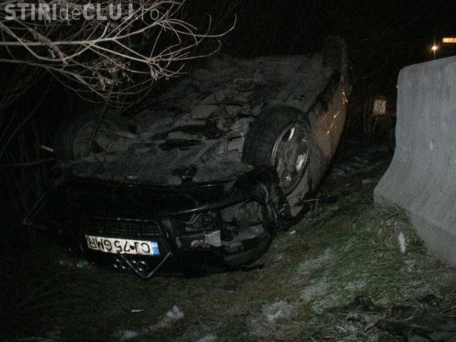 Un șofer s-a răsturnat cu mașina pe malul Someșului, în zona Dejului, miercuri seara, în jurul orei 22.00.