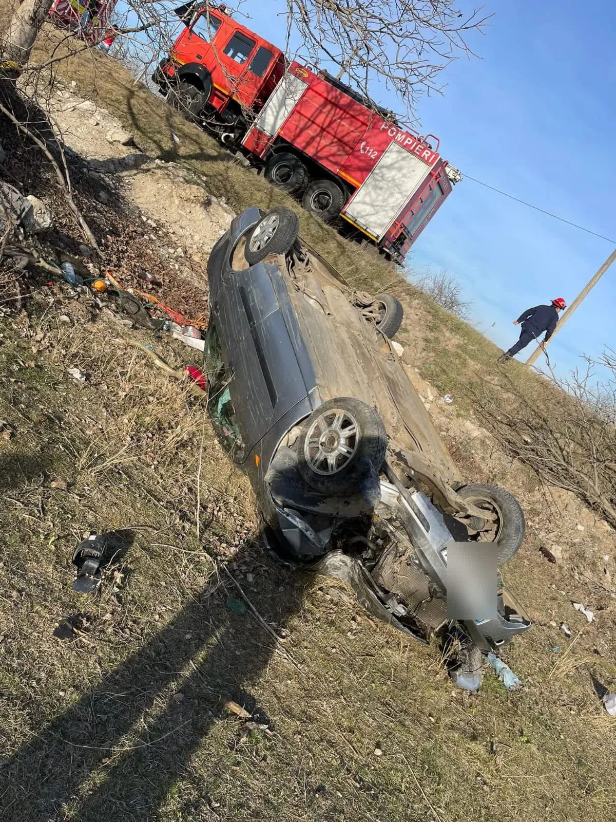 Pompierii au găsit la fața locului un autoturism răsturnat și cinci persoane care au ieșit singure afară. Un copil de un an, care prezenta un traumatism cranian, a fost transportat în stare gravă la spital de către echipajul SMURD.