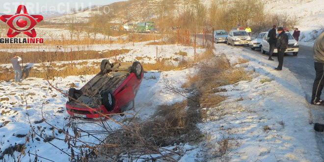 Un autovehicul Renault, în care se aflau trei persoane, s-a rasturnat pe marginea dreapta a drumului. Doua persoane au fost transportate la spital, iar șoferul a scăpat teafăr, scrie Gherla Info.