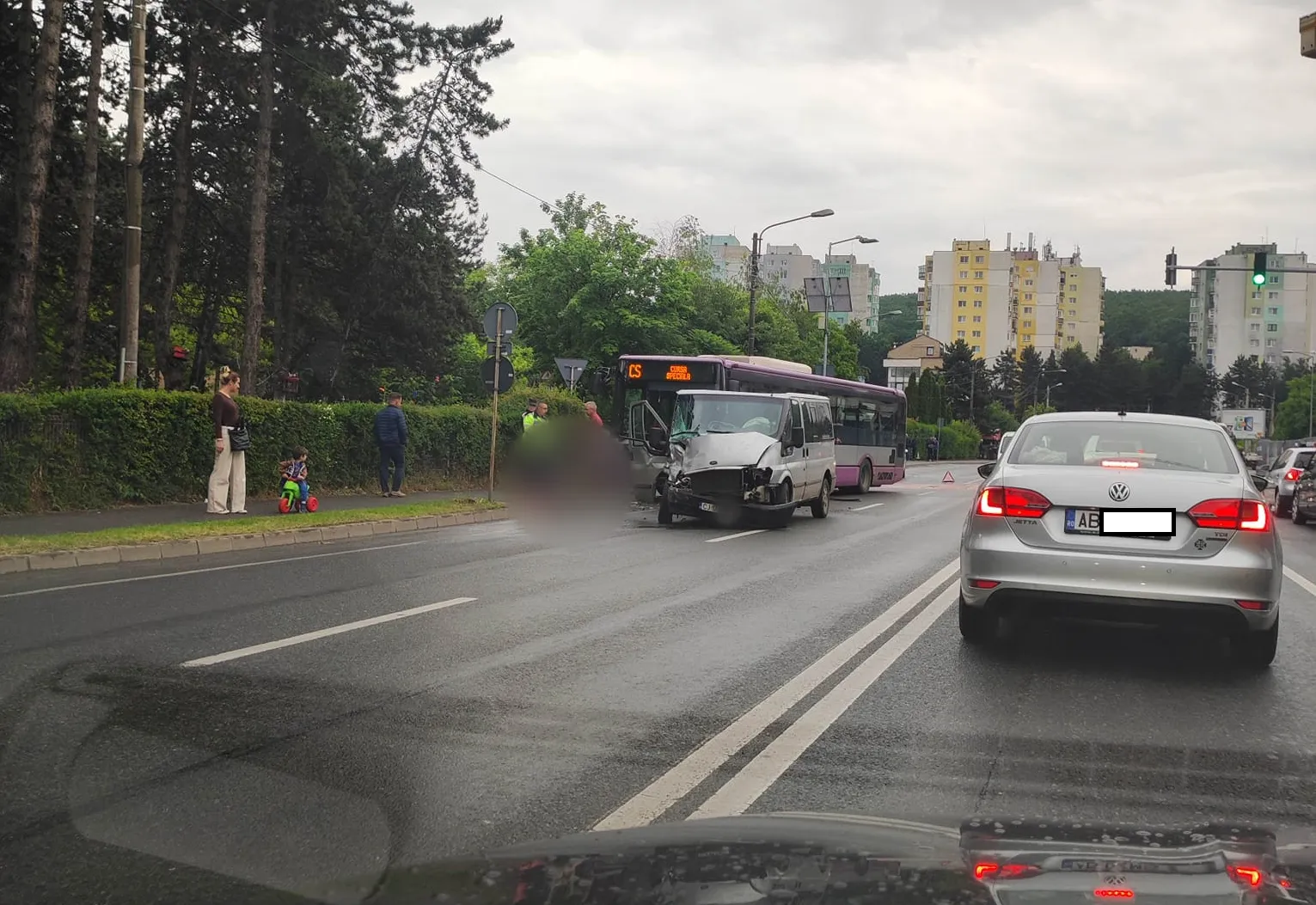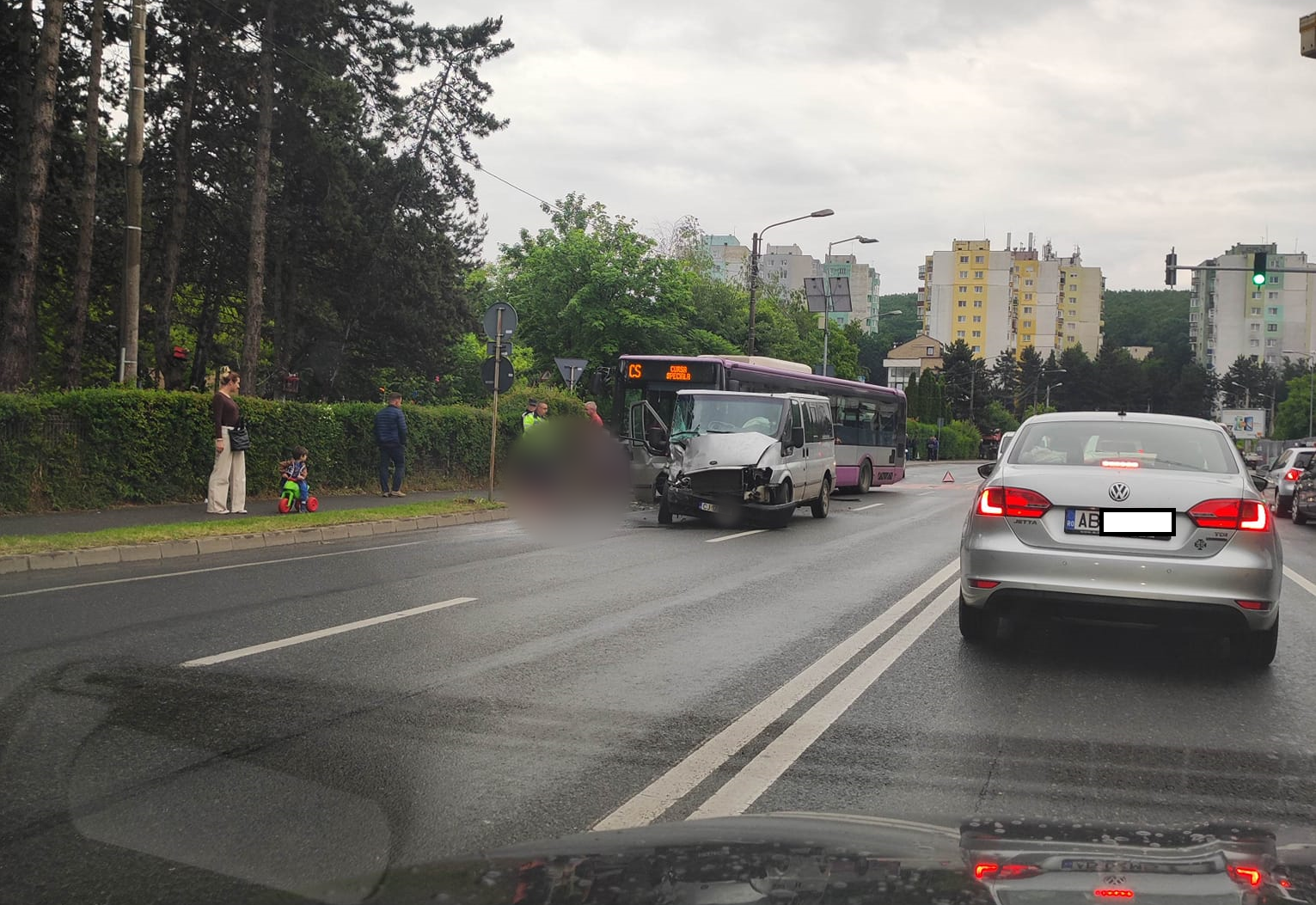 Accident la Colina, în Mănăștur! Un microbuz i-a tăiat calea unui autobuz - FOTO