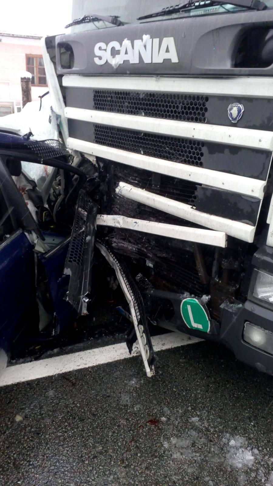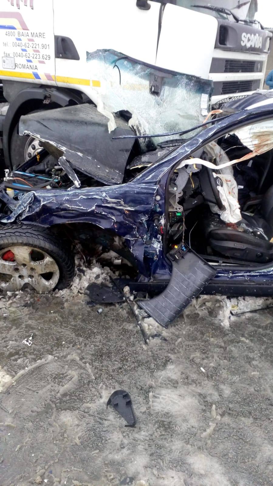 Accident la Coplean, lângă Dej, cu un mort și patru răniți. Au intrat sub un TIR - FOTO