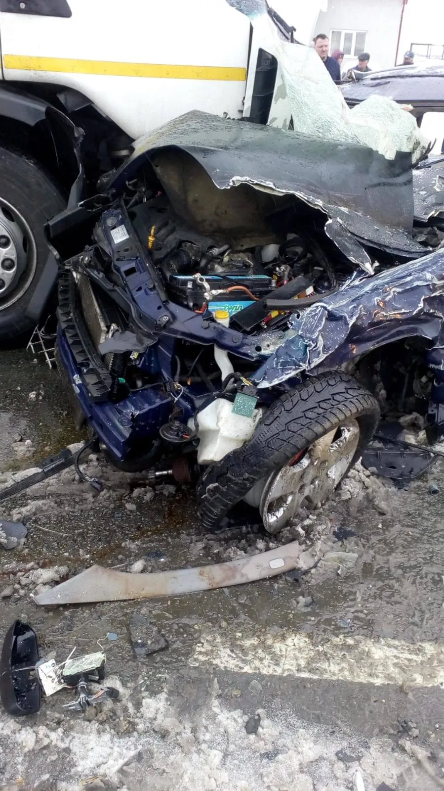 Accidentul s-a produs pe fondul vitezei neadaptate la carosabilul umed în curbă. Șoferul a pierdut controlul direcției, a pătruns pe contrasens intrând in coliziune cu o autoutilitară și apoi cu un TIR.