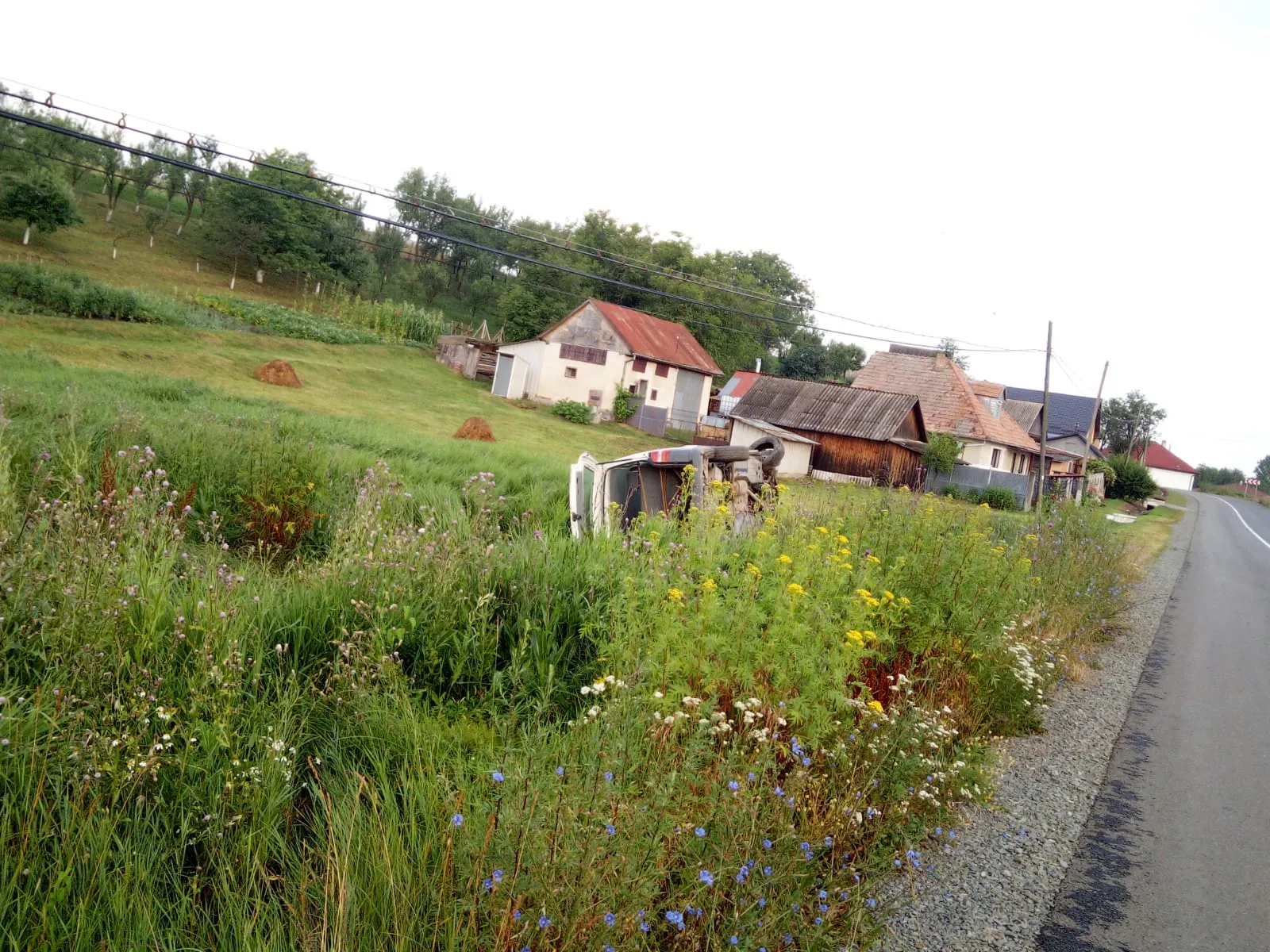 Accident la Dăbâca! Un șofer a ajuns cu mașina răsturnată pe marginea drumului FOTO