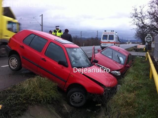 Accident la Dej, pe strada Vâlcele! Două mașini au ajuns în șanț