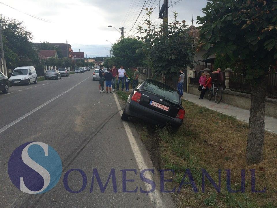 Accident la Gherla. O mașină a fost proiectată în șanț după ce a intrat pe interzis VIDEO