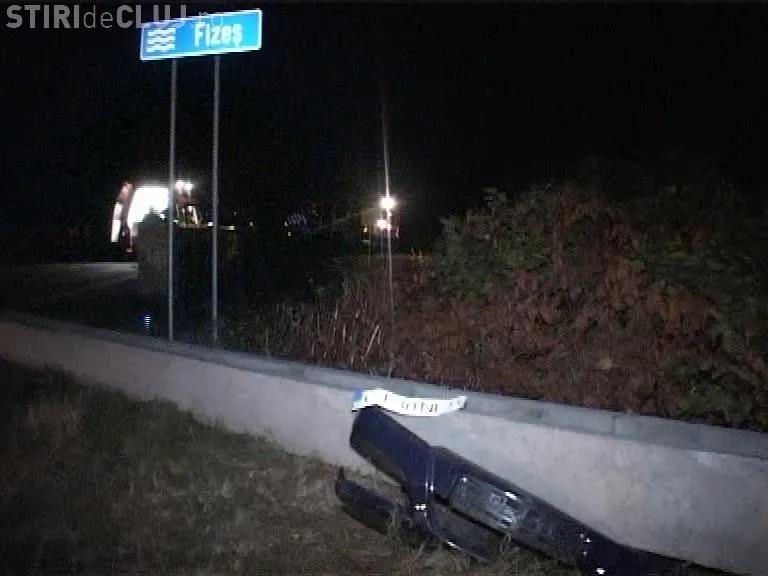 Șoferul circula cu viteza a pierdut controlul volanului, a rupt un stalp de electricitate, dupa care a fost proiectat in Valea Fizesului, cu rotile in sus.