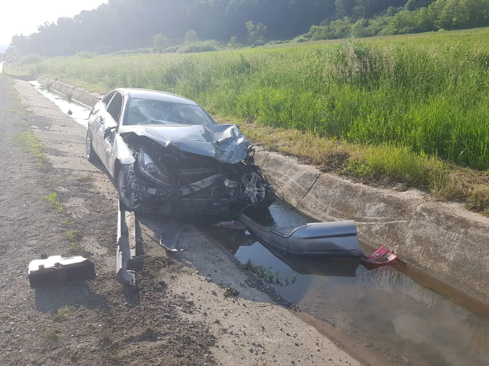 Accident la Huedin! Ambele masini proiectate in afara drumului - FOTO