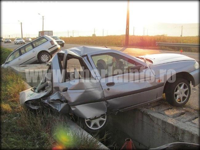 Soferul altui autoturism, care a incercat sa evite impactul, a iesit de pe carosabil, dar nu a fost ranit.