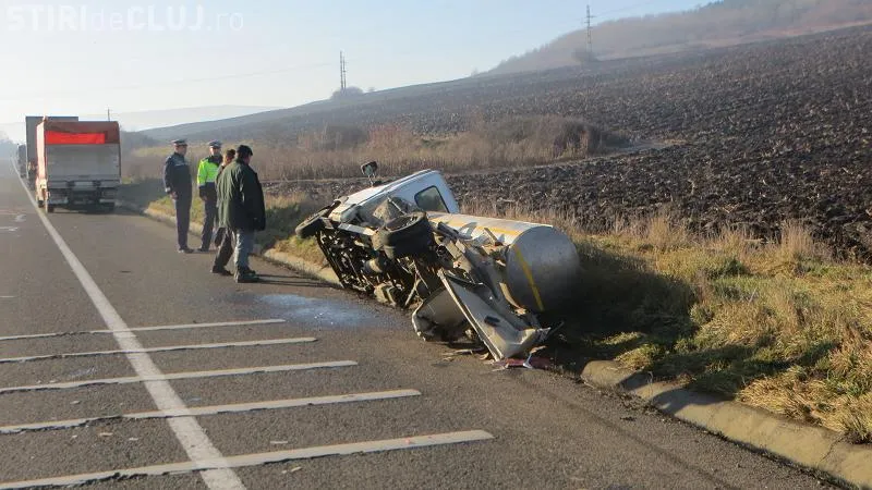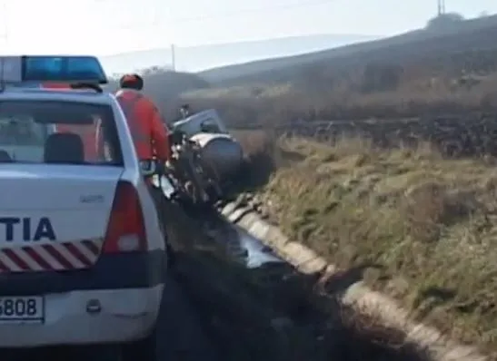 Accident la ieșire din Bonțida! O autospecială cu lapte a fost proiectată în șanț - VIDEO și FOTO
