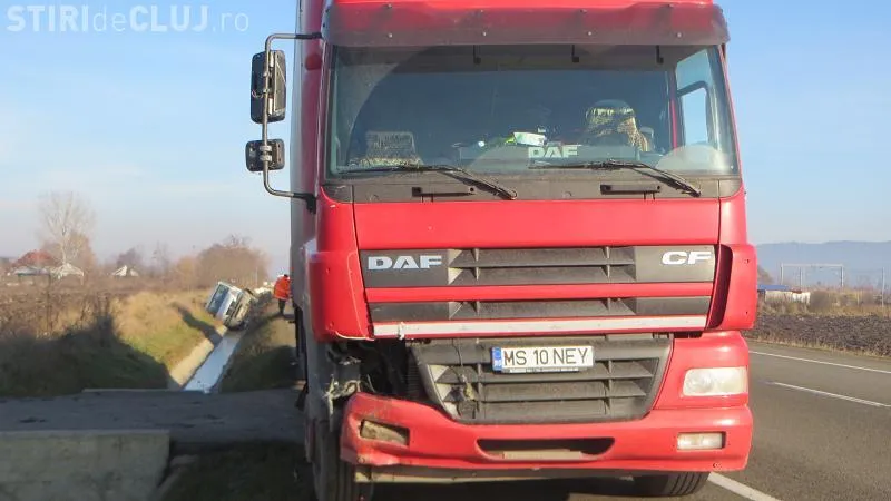 Accidentul s-a produs joi dimineața, la ieșire din Bonțida spre Răscruci. ”Un autotren nu a respectat distanța regulametară în mers și a lovit o autoutilitară care circula în fața sa. Mașina lovită a fost proiectată șant”, au precizat polițiștii.