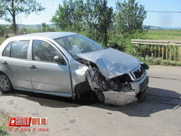 O femeie in varsta de 38 de ani din Gherla a intrat cu masina intr-un cap de pod, miercuri dupa-amiaza, la iesire din localitate.