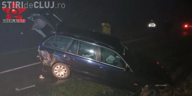 Accident la ieșire din Gherla. Un șofer și-a făcut praf BMW-ul VIDEO