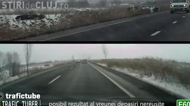 Accident la ieșire din Huedin, surprins de un șofer! Cauza: o depășire nereușită - VIDEO