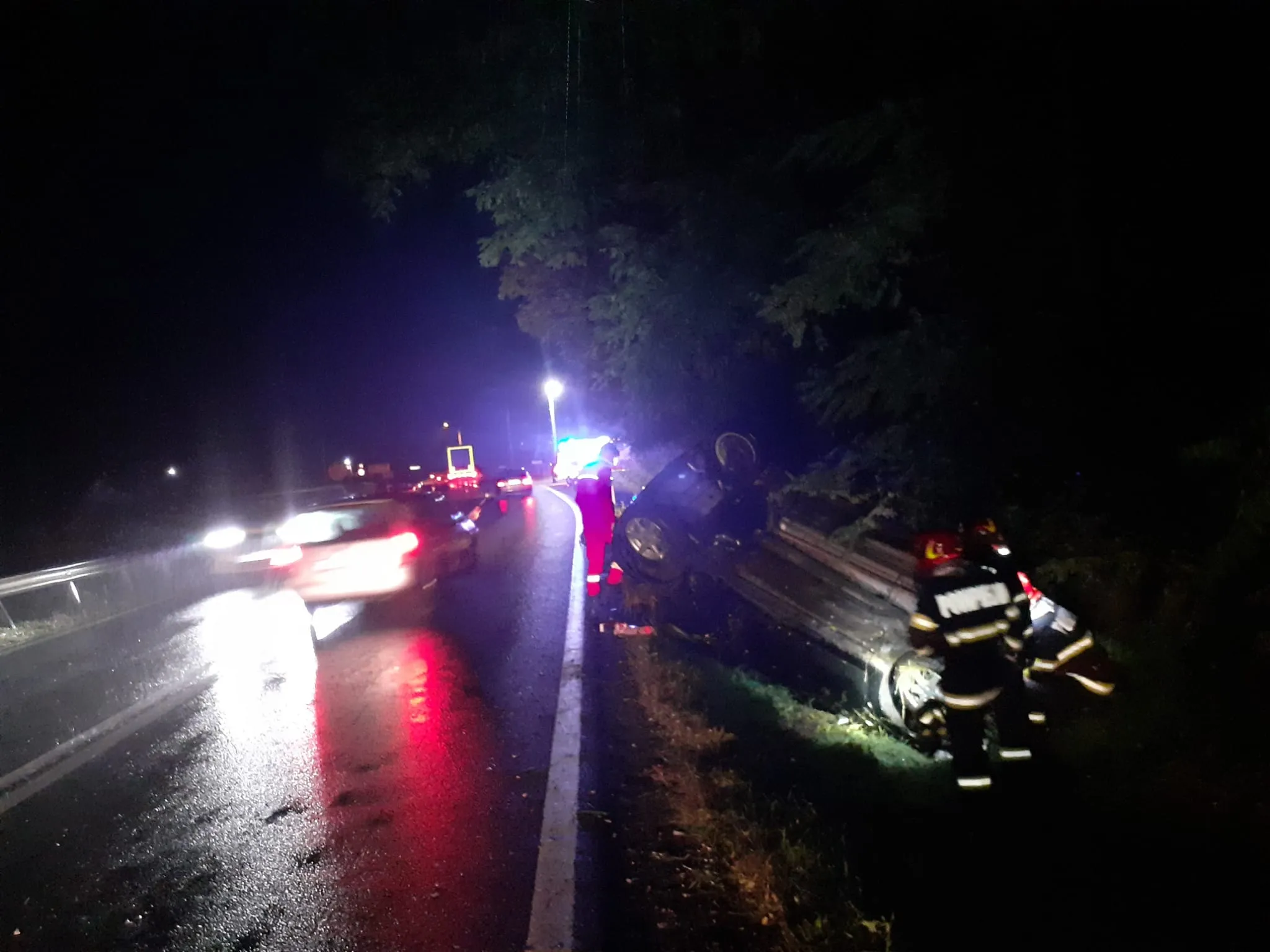 În accident a fost implicat un singur autoturism, care era răsturnat atunci când forțele noastre au ajuns la fața locului.