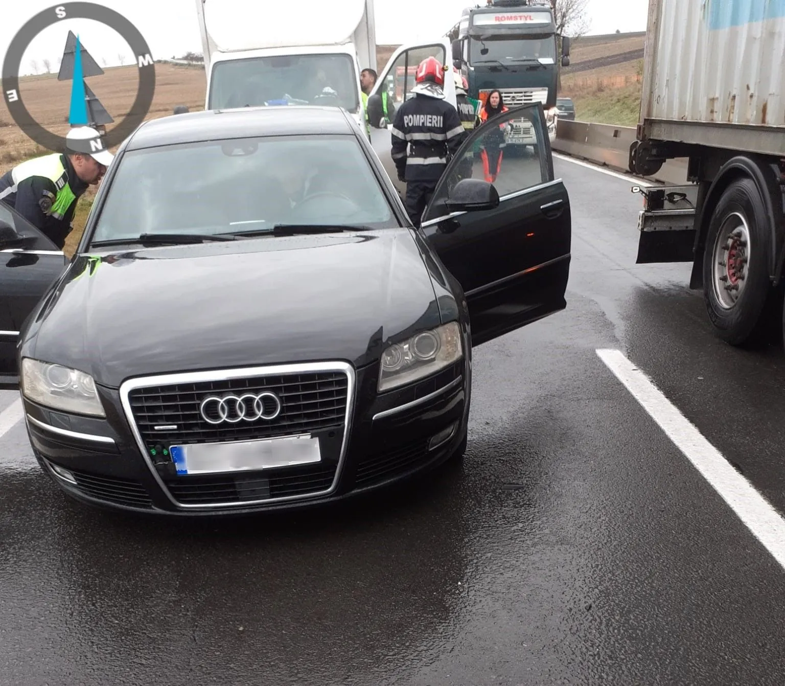 „La fața locului s-au deplasat o autospecială cu modul de descarcerare și un echipaj SAJ, unde au găsit două autoturisme avariate și ocupanții ieșiți din acestea.