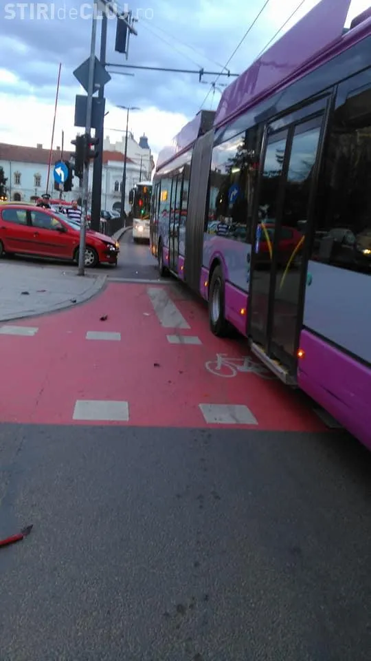 ”Dupa, impact, care - se vede si din poze - intr-adevar ”rosioara” a intrat in troleibuz. Vai, vai!!! Cât despre iesirea din parcare, numai de bine !!!”, a scris Nelu Zăpărtan, pe grupul Info Trafic jud. Cluj.