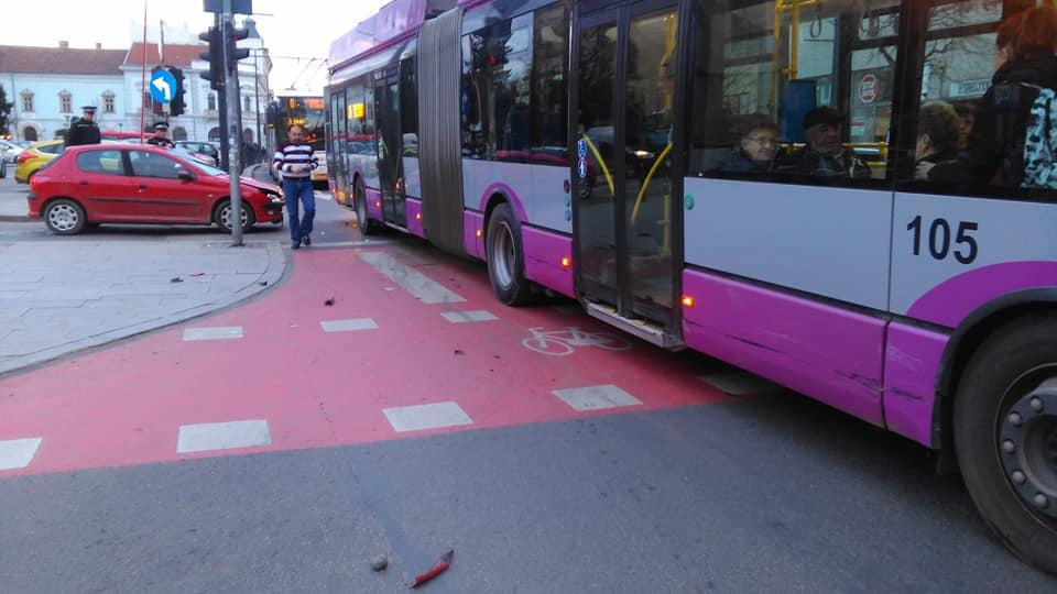 Accident la ieșirea din parcarea din Piața Unirii! A făcut ”BOC” cu autobuzul - FOTO