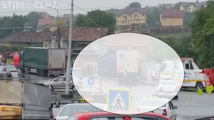 Un TIR rupt tot în cale la intersecția străzii Oașului și Bulevardul Muncii.