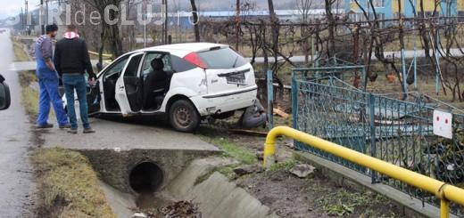 Accident la ieșire din Dej! Un șofer s-a oprit direct într-o țeavă de gaz FOTO