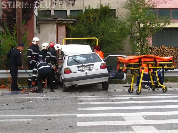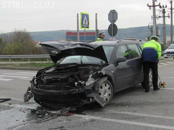 Accident la intrare pe centura orașului Gherla! Două mașini s-au făcut praf - FOTO