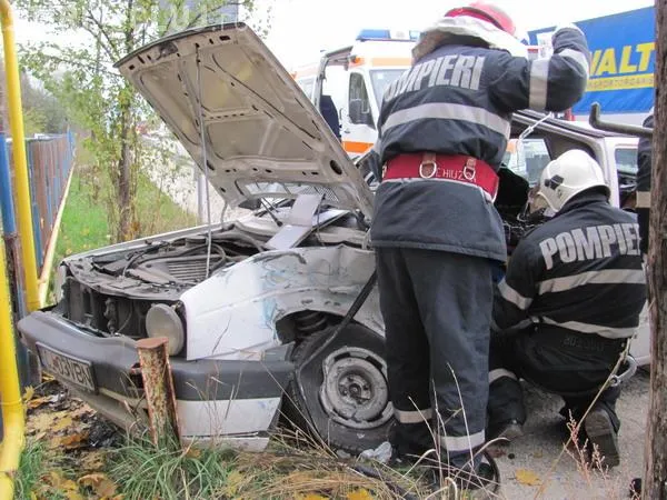 Două persoane au fost rănite grav în acest accident. Șoferul din Vâlcea a scăpat fără răni, dar mașina lui a fost serios avariată.