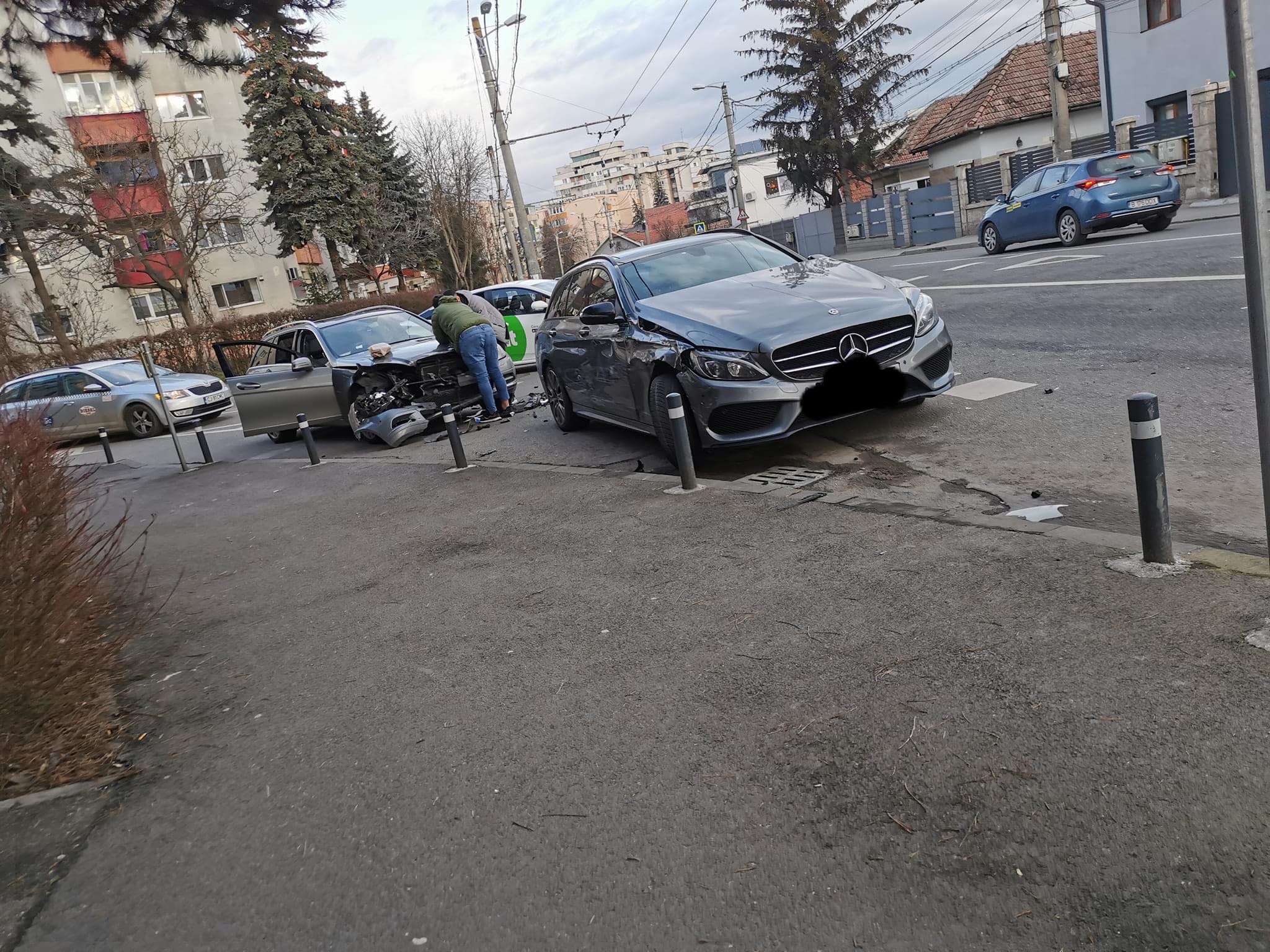 Accident la intrare pe strada Câmpului, între doua Mercedesuri- FOTO
