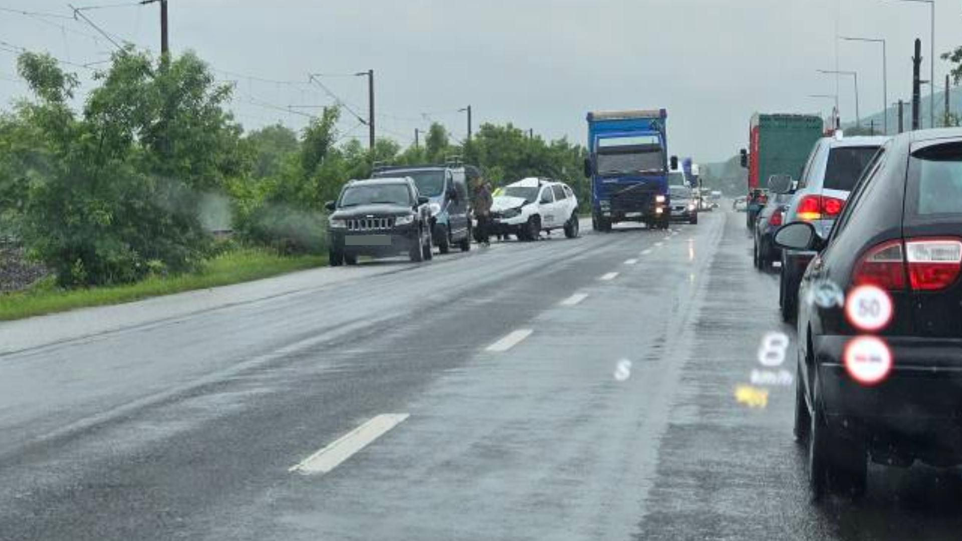 Accident cu trei vehicule la intrarea în Dej – traficul se mișcă greu pe DN1C