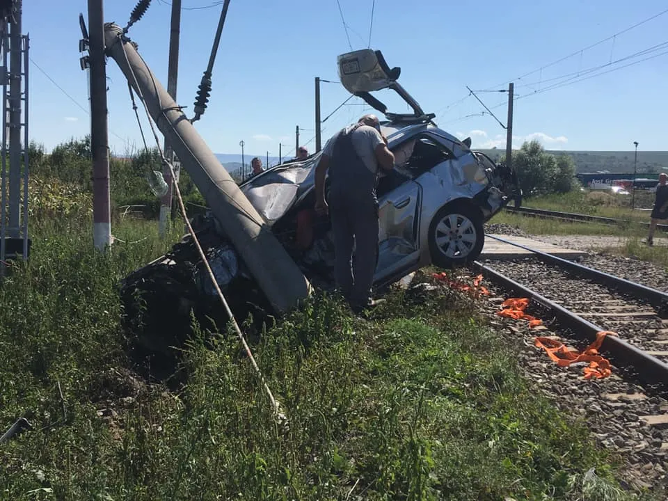Accident la Jucu de Mijloc. Mașină lovită de tren - FOTO