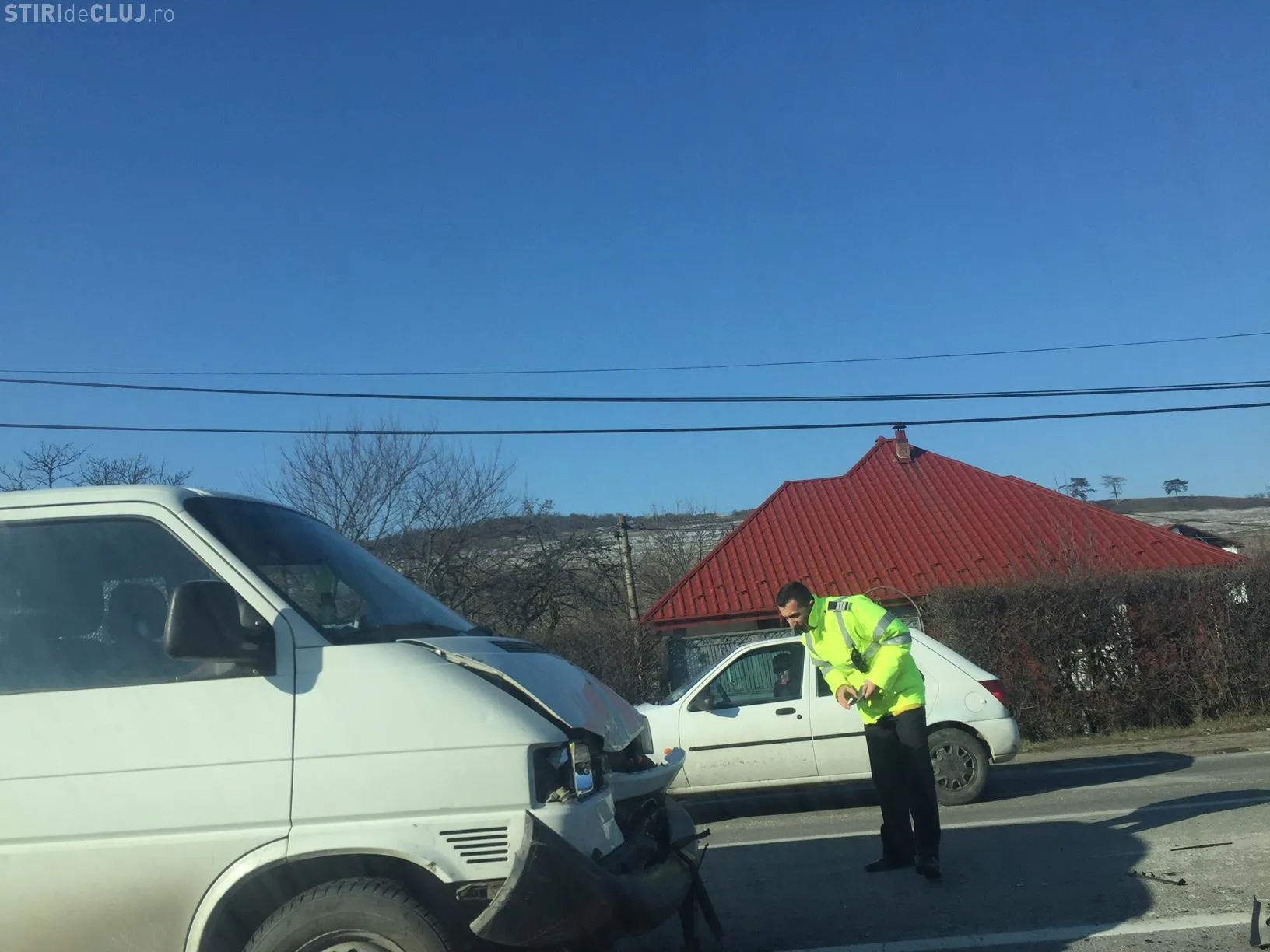 Două maşini s-au ciocnit marți, în jurul orei 11.35 pe DN1C, la Jucu, la intersecţia semaforizată cu şoseaua care duce spre parcul industrial.