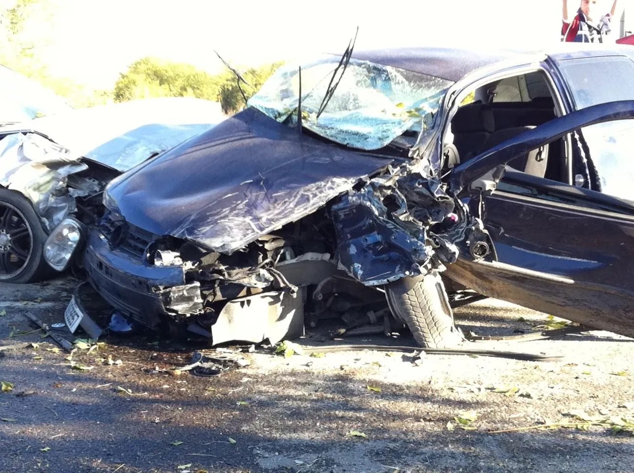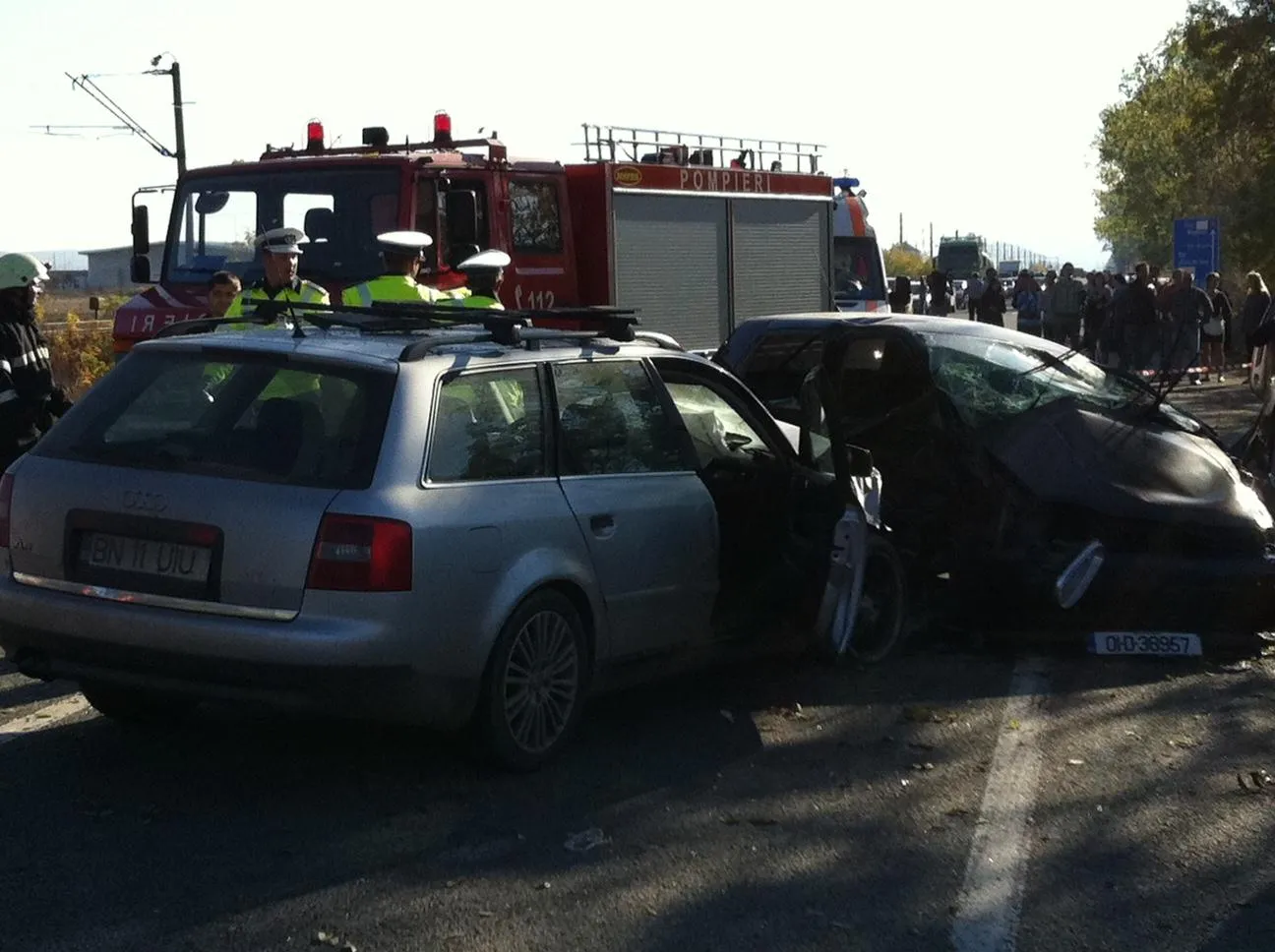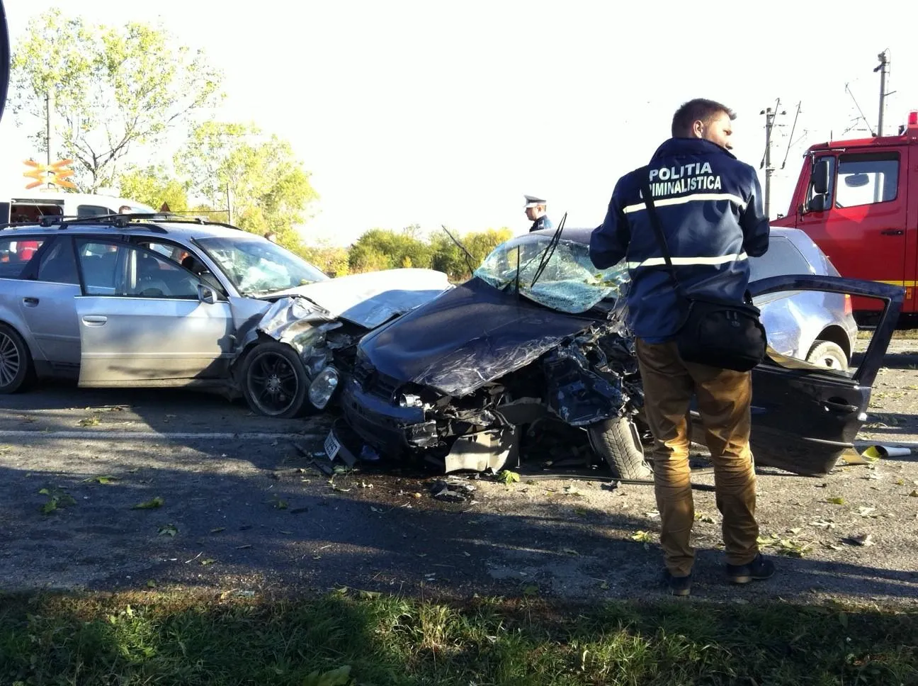 Loganul a fost izbit violent în partea stângă față și proiectat pe marginea drumului, unde s-a răsturnat. VW Golf a ricoșat în urma impactului într-un Audi care circula regulamentar în spatele Daciei Logan. Cele două mașini s-au lovit frontal.