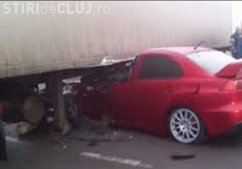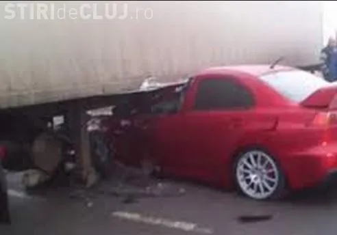 Accident la Jucu. Un autoturism a intrat sub un TIR