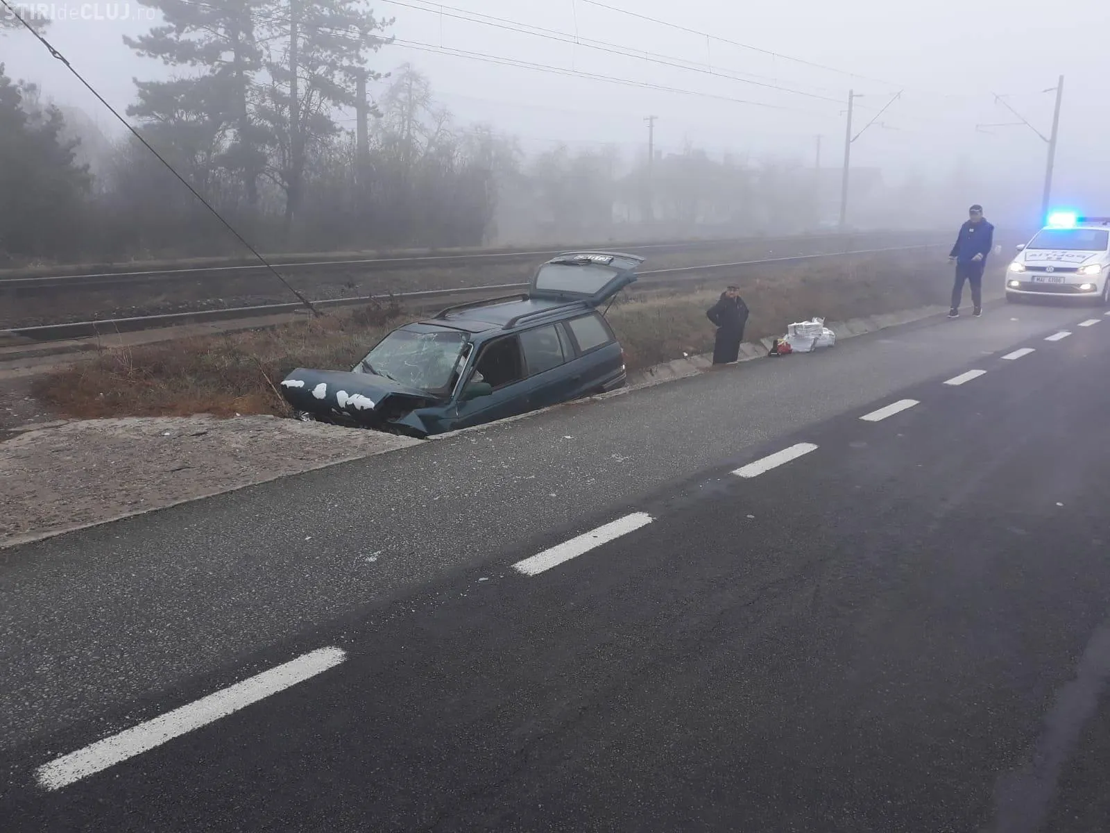 Un autoturism a părăsit carosabilul, sâmbătă dimineața, în jurul orei 6:50, pe raza localității Livada, județul Cluj.