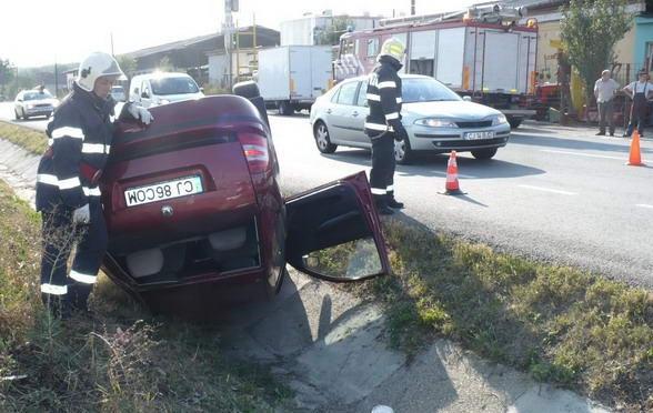 Un șofer, care circula pe directia Gherla - Cluj-Napoca, a intenționat să vireze la stânga, dar a fost lovit din spate de o Sokda, care era în depășire. Ultima mașină s-a răsturnat în sanțul de pe marginea drumului.
