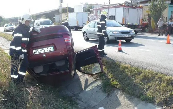 Un autoturism marca Skoda s-a răsturnat, sâmbătă, în jurul orei 17.30, pe raza localității Livada, la ieșire din Gherla.