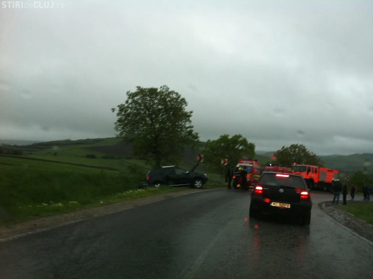 Accident la Mociu! O masina rasturnata a fost lovita de un alt sofer FOTO