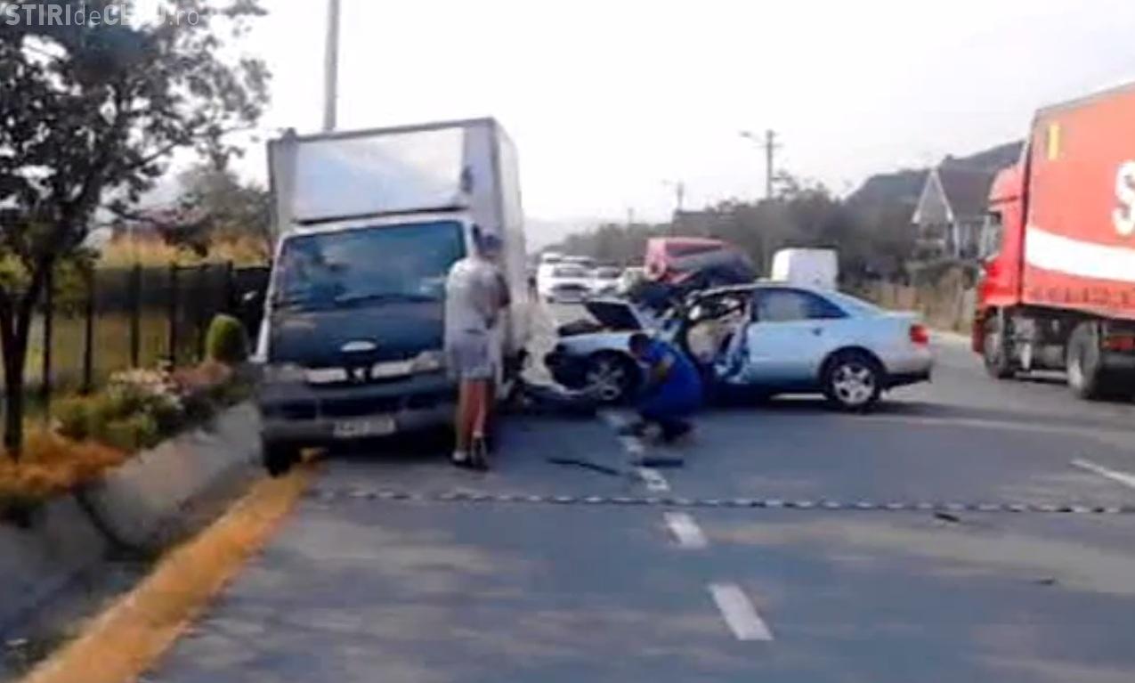 Accident la Nima! Un Audi s-a făcut praf după ce a lovit un camion - VIDEO