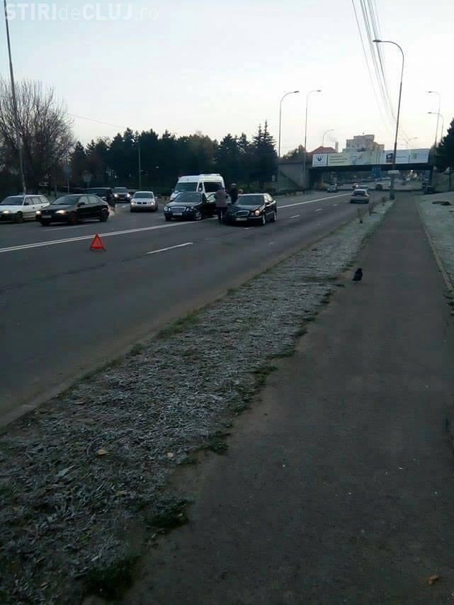 Două autoturisme marca Mercedes s-au lovit, sâmbătă dimineața, în jurul orei 8, lângă Podul N din cartierul Mănăștur.