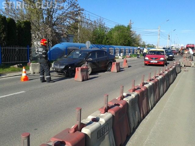 Un șofer a intrat cu mașina în balizele care separă sensurile de mers, în zona Polus, cauzând apoi un accident în lanț.