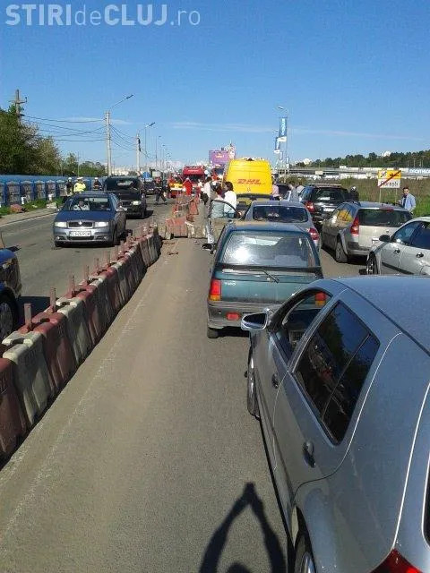 Conform Poliției Cluj, șoferul a avut un moment de neatenție și a lovit balizele din plastic, rămânând blocat acolo. Alte trei autoturisme și o motocicletă au fost avariate, lovind balizele împrăștiate pe tot drumul.