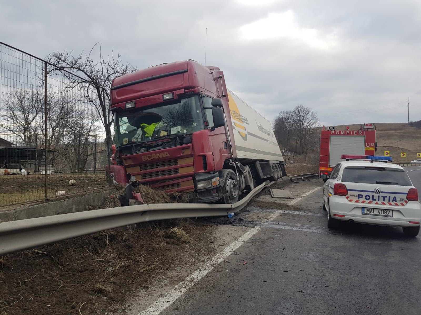 Un TIR a ieșit de pe Drumul Național E60, pe raza localității Șaula.