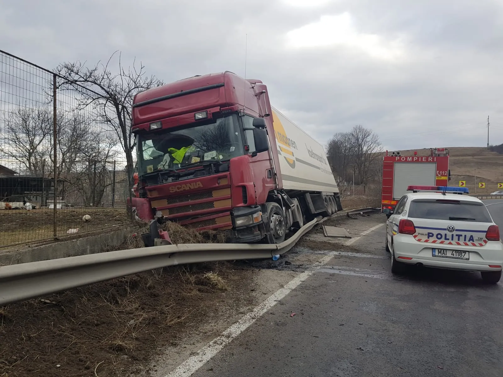 În jurul orei 16:00, șoferul unui autocamion, pe fondul neadaptarii vitezei intr-o curba, a parasit partea carosabila. Soferul a fost testat și nu consumase alcool.