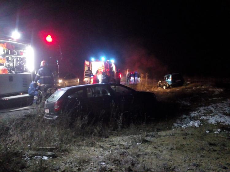 Pompierii sosiți la locul accidentului au găsit două autoturisme avariate și o persoană încarcerată într-unul dintre acestea.