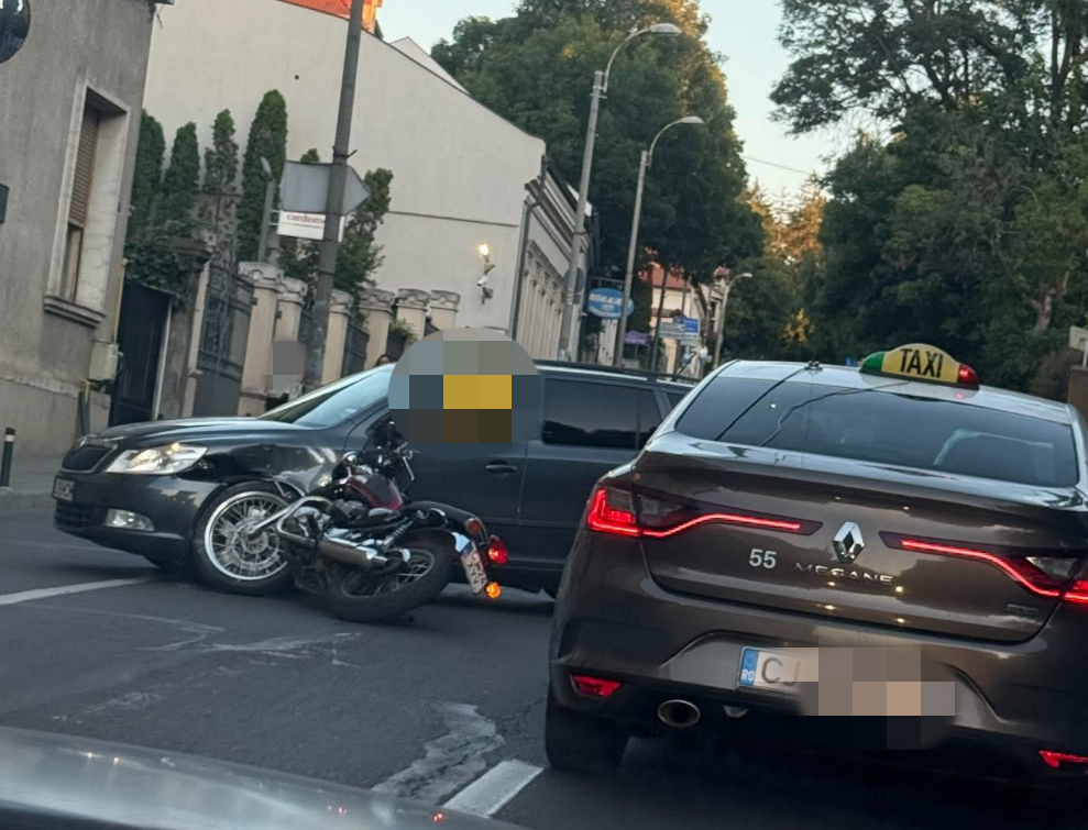 Un accident rutier a avut loc în această seară, în zona Spitalului CFR din Cluj-Napoca. Incidentul a implicat un motociclist și un autovehicul care ieșea din curte.