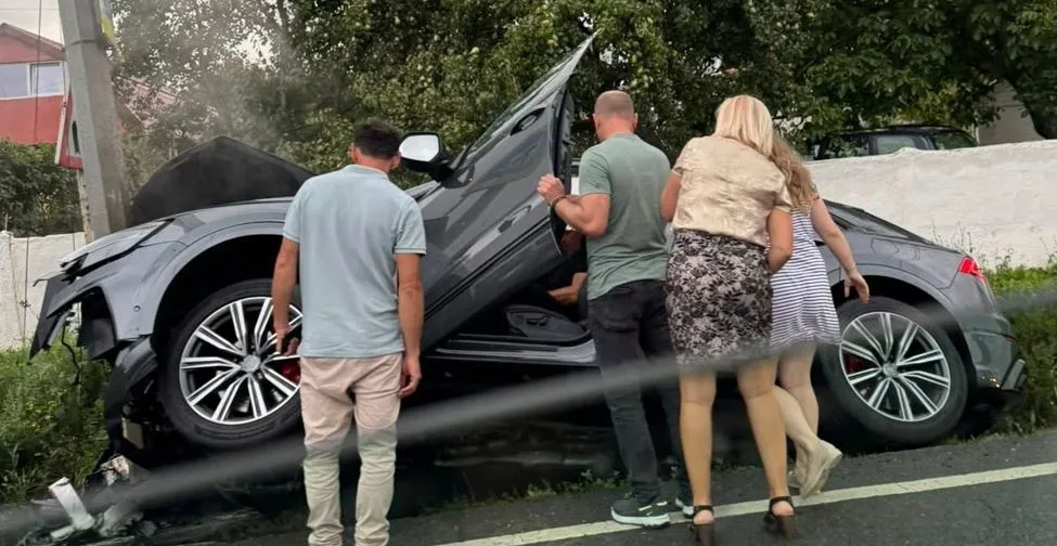 Accident la Vâlcele. O mașină a ajuns în șanț și s-a oprit într-un stâlp de electricitate. Al cincilea accident azi în județul Cluj FOTO