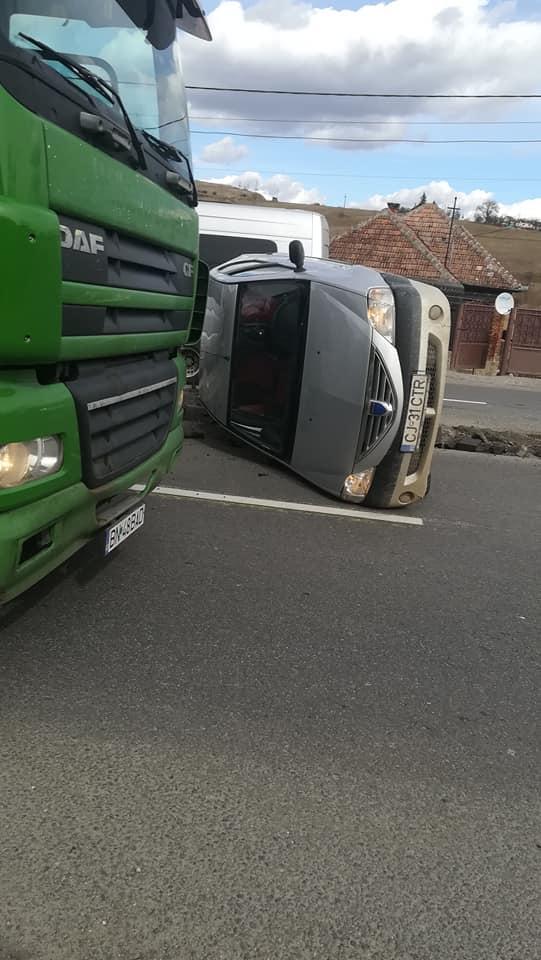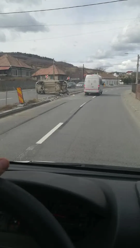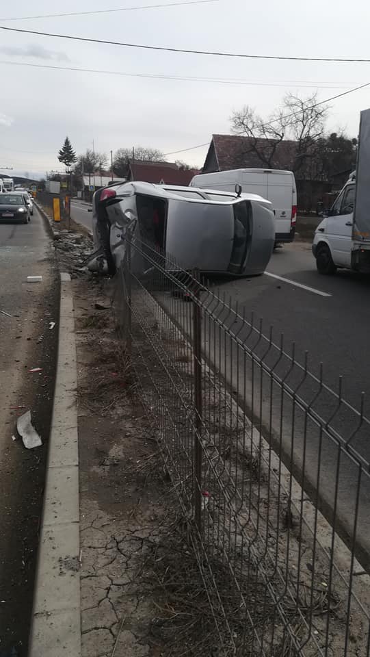 Un autoturism marca Dacia Logan s-a răsturnat la Vâlcele, pe sectorul îngustat de drumari și unde au amplasat și un gard metalic, care să despartă sensurile de mers.