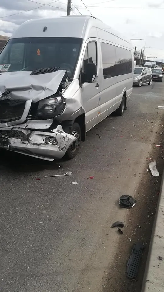 Autoturismul marca Dacia Logan a fost lovit din spate de șoferul care conducea microbuzul. În urma impactului, Loganul a fost aruncat în gardul ce desparte sensurile de circulație.